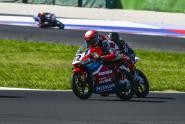 M Kiandra Ramadhipa berjuang sengit pada ETC seri kelima FIM JuniorGP World Championship yang digelar di Misano World Circuit Marco