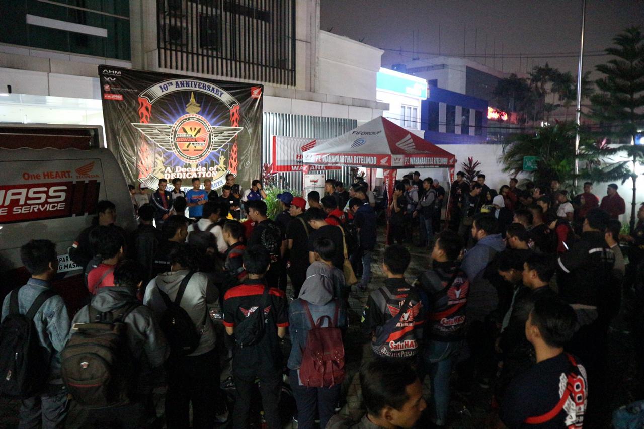 Jakarta, 10 Maret 2019 - Sejumlah para Bikers terdiri dari Klub / Komunitas yang tergabung di Asosiasi Honda Jakarta (AHJ) pada Jum'at malam sabtu (08/03) ramai - ramai memadati acara syukuran hari jadinya AHJ yang sudah mencapai 1 Dekade (10 Tahun) yang di gelar disalah satu lokasi Gedung Wahanaartha Pasar Minggu, Jakarta Selatan.