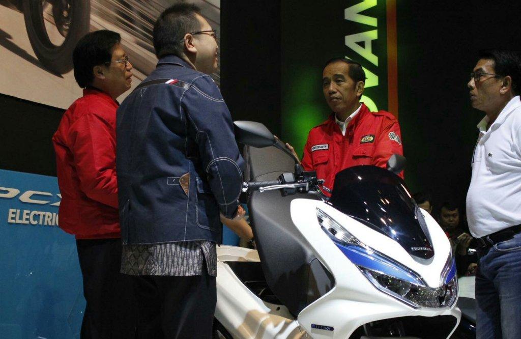 – Bro n sis sedoyo balek lagi neng kene, Gelaran Indonesia Motorcycle Show (IMOS) pada Sabtu(3/10) dimeriahkan dengan kehadiran Presiden Republik Indonesia Ir.H.Joko Widodo yang menghabiskan waktunya menyaksikan dan mengamati salah satu motor skutik terlaris di Indonesia Honda Vario 150 dan motor konsep Honda PCX Electric.