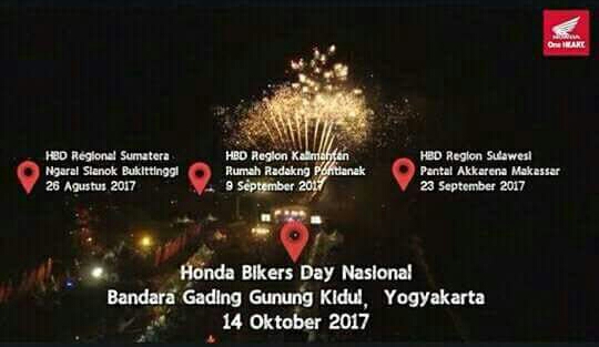 Jakarta, 6 September 2017 - Honda Bikers Day (HBD) Region Sulawesi, akan dilaksanakan pada tanggal 23 September 2017 di Pantai Akkarena Makassar Sulawesi Selatan.