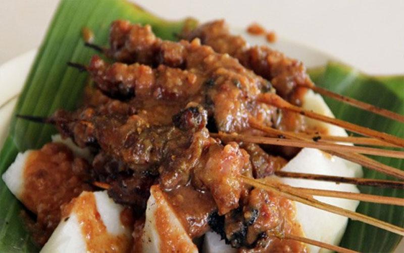 Sate yang di baluri oleh saus kacang kasar yang rasanya manis dan kental ini lezat sekali.