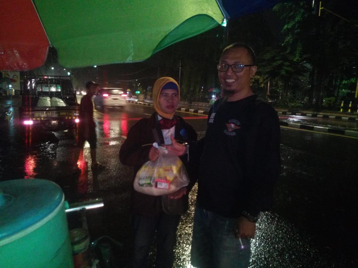 Gerimis yang tak diundang tidak menyurutkan langkah pembagian sembako ini.