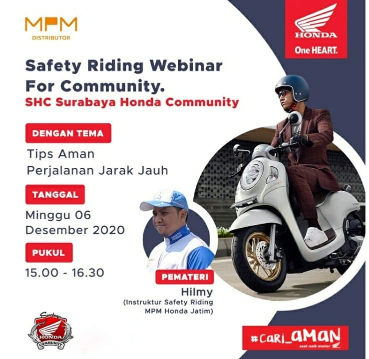 Webinar Safety Riding For Community ini diadakan pada minggu 6 Desember 2020 dan bekerja sama dengan tim safety riding MPM Honda Jatim.