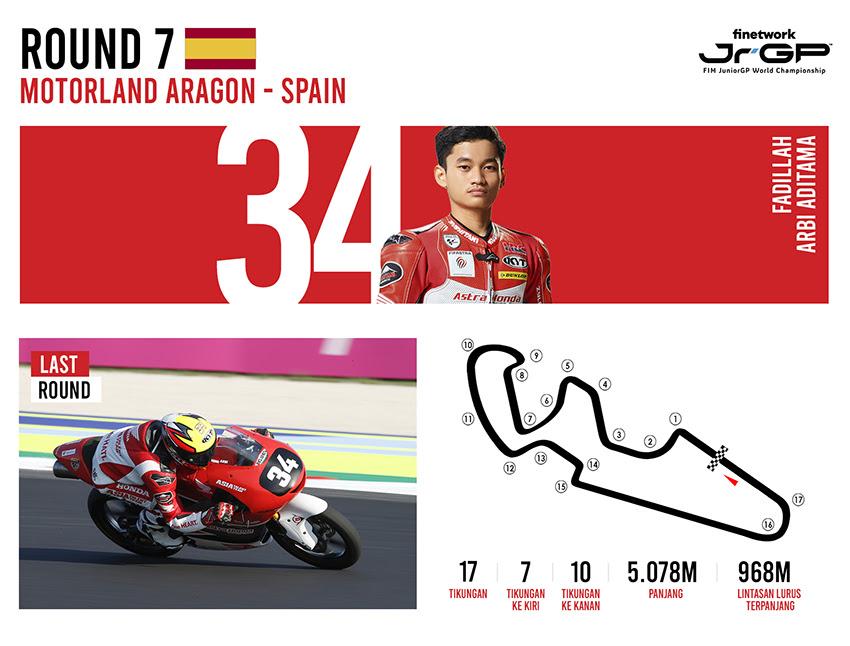 Kawan-kawan... FIM JuniorGP akan menggelar putaran ketujuh di MotorLand Aragón pada akhir pekan ini (9/10). Fadillah Arbi Aditama bertekad untuk melanjutkan kemajuan adaptasinya pada sirkuit yang belum lama ini juga ia lintasi saat melakukan tes di bulan September lalu.