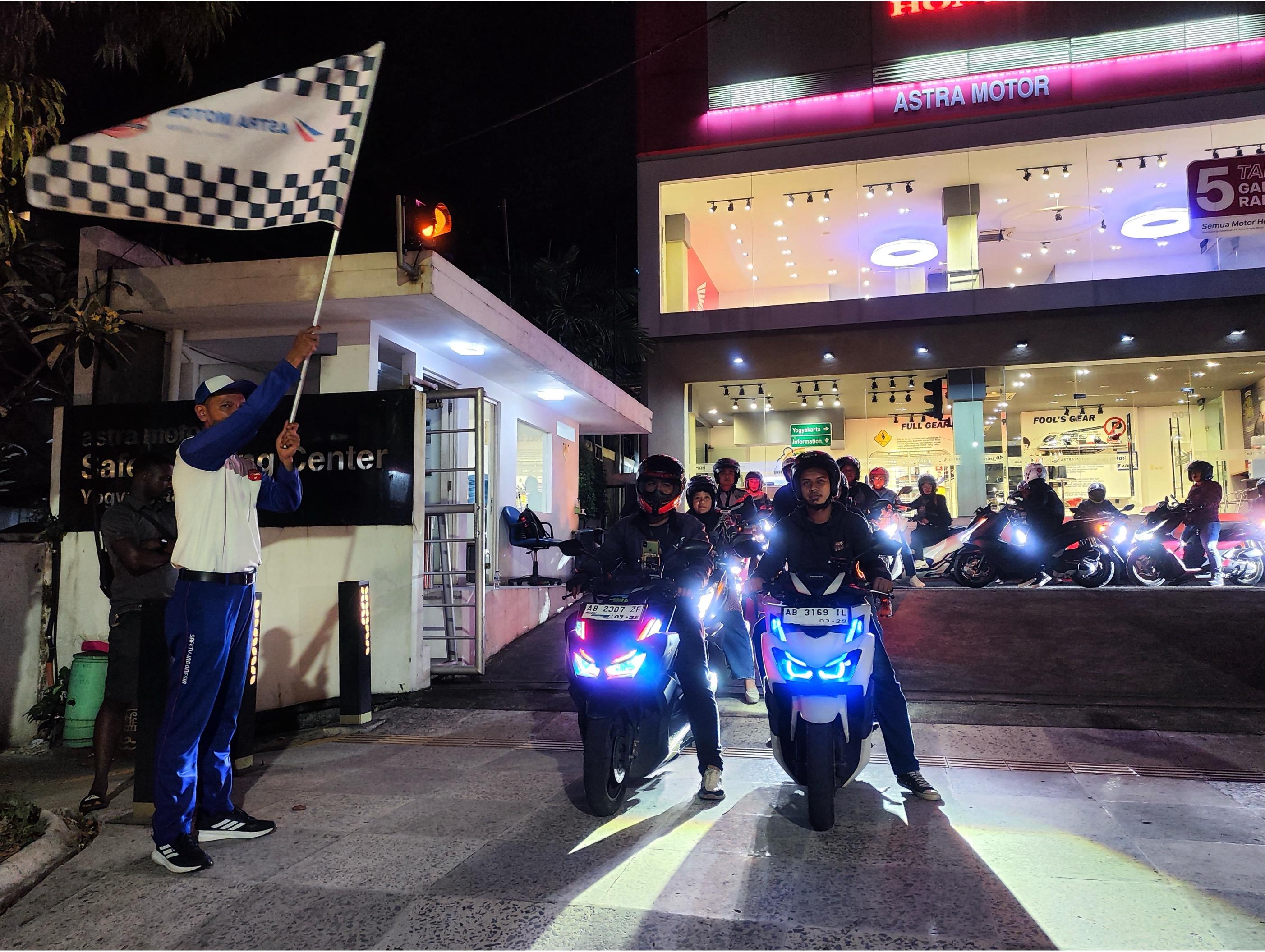 “Sensasi berkendara bersama sepeda motor Honda di malam hari tidak kalah seru dengan aktivitas kami sebelumnya. Kami mengajak para bikers Honda untuk kumpul bersama, riding santai dan gathering antar komunitas Honda. ” Ungkap, Marketing Manager Astra Motor Yogyakarta Julius Armando.