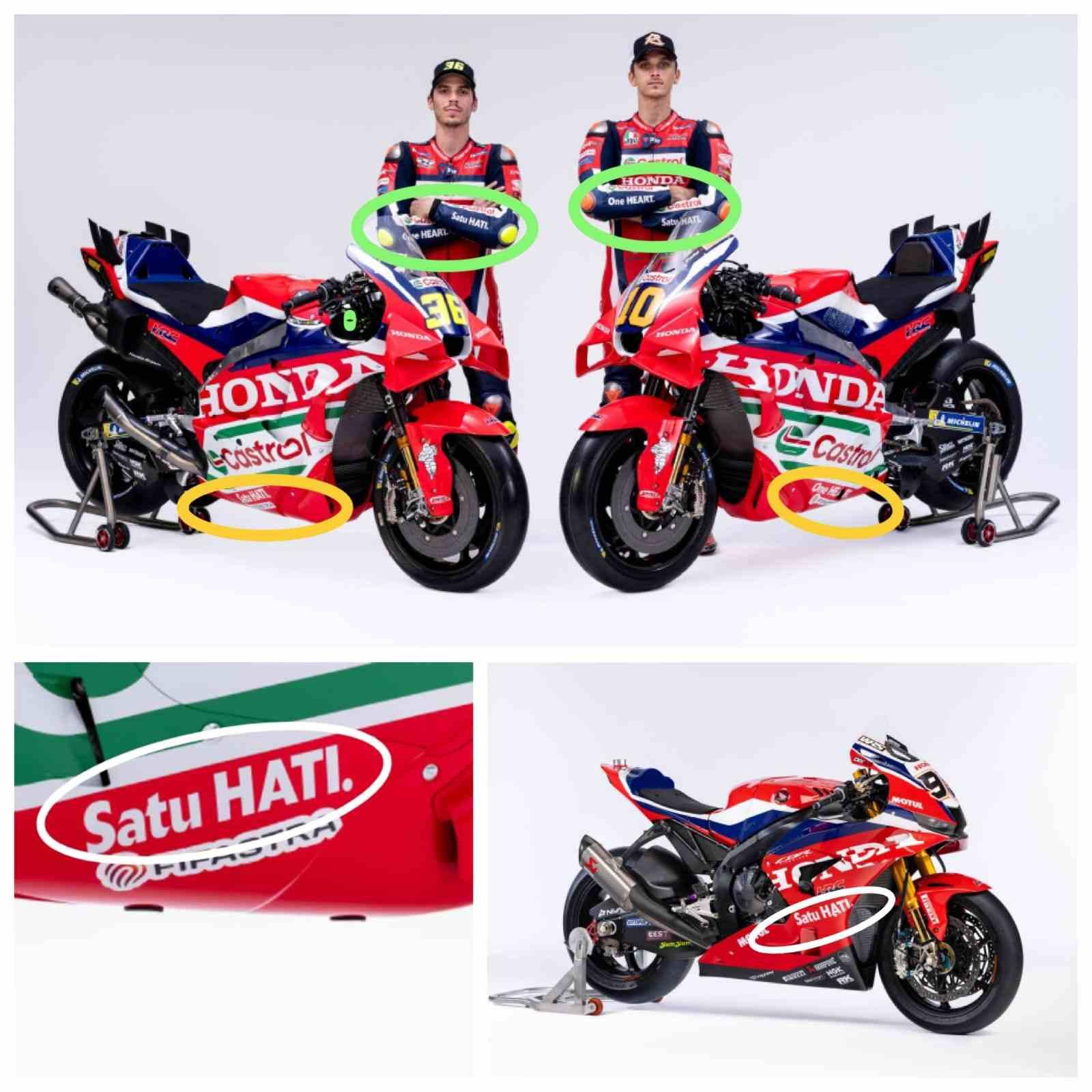 Di balap MotoGP 2026, logo “One Heart.” dan “Satu Hati.” akan menghiasi panel bodi bagian samping bawah motor RC213V yang digunakan Honda Racing Team.