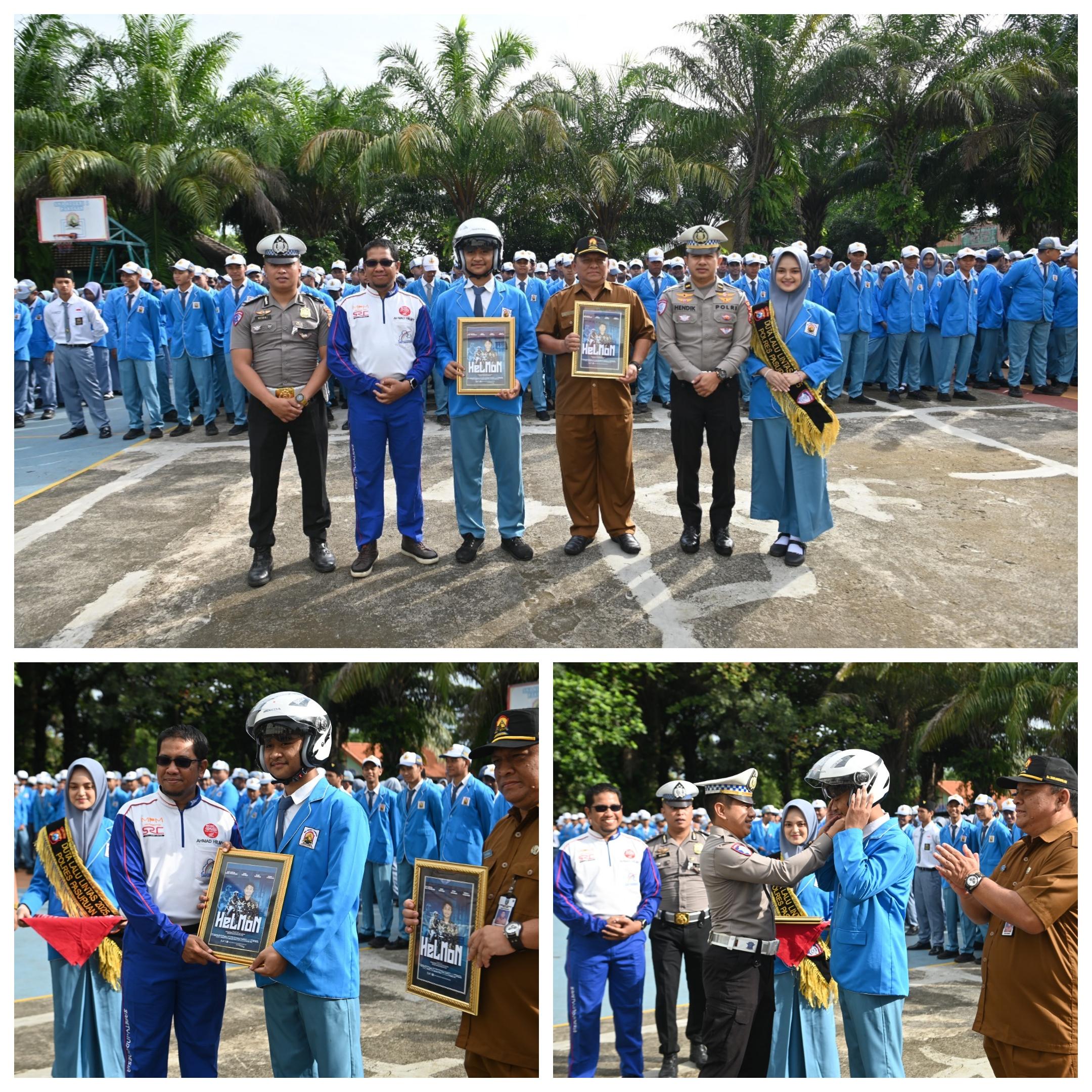 Penghargaan HELMON diberikan oleh Satlantas Polres Pasuruan kepada siswa yang secara konsisten mematuhi peraturan lalu lintas, seperti menggunakan helm berstandar SNI, mematuhi rambu lalu lintas, serta mengedepankan keselamatan saat berkendara.