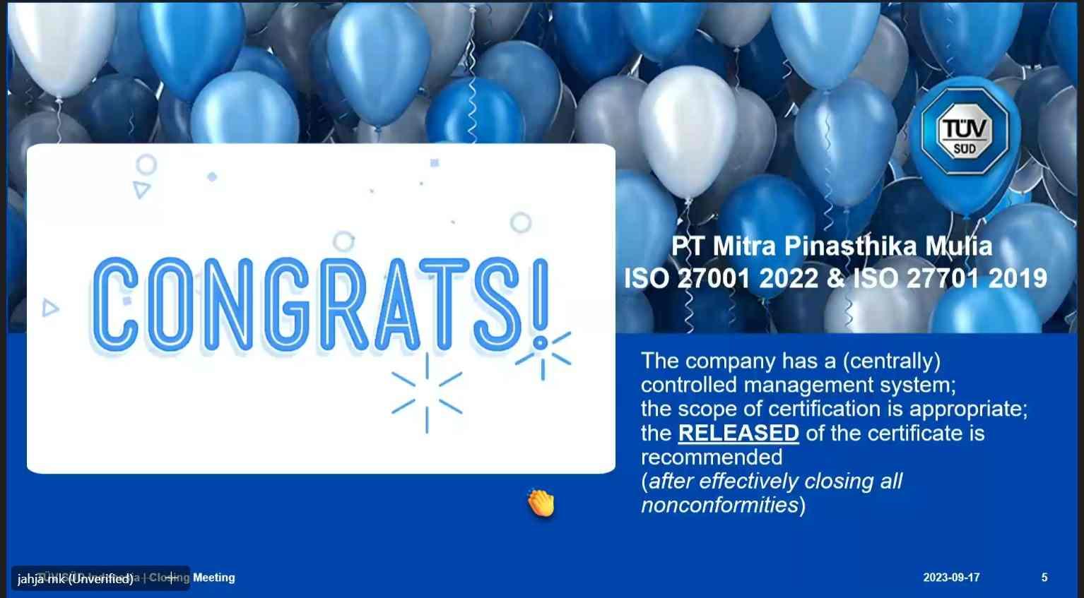 Kelanjutan dari komitmen berkelanjutan dalam menjaga keamanan informasi dan perlindungan data pribadi, PT Mitra Pinasthika Mulia (MPM Honda Jatim) kembali melaksanakan audit ISO 27001:2022 dan ISO 27701:2019 pada tahun 2025. Audit ini menjadi bagian dari upaya perusahaan untuk memastikan sistem pengelolaan keamanan informasi dan privasi data tetap relevan, efektif, dan selaras dengan perkembangan risiko di era digital.