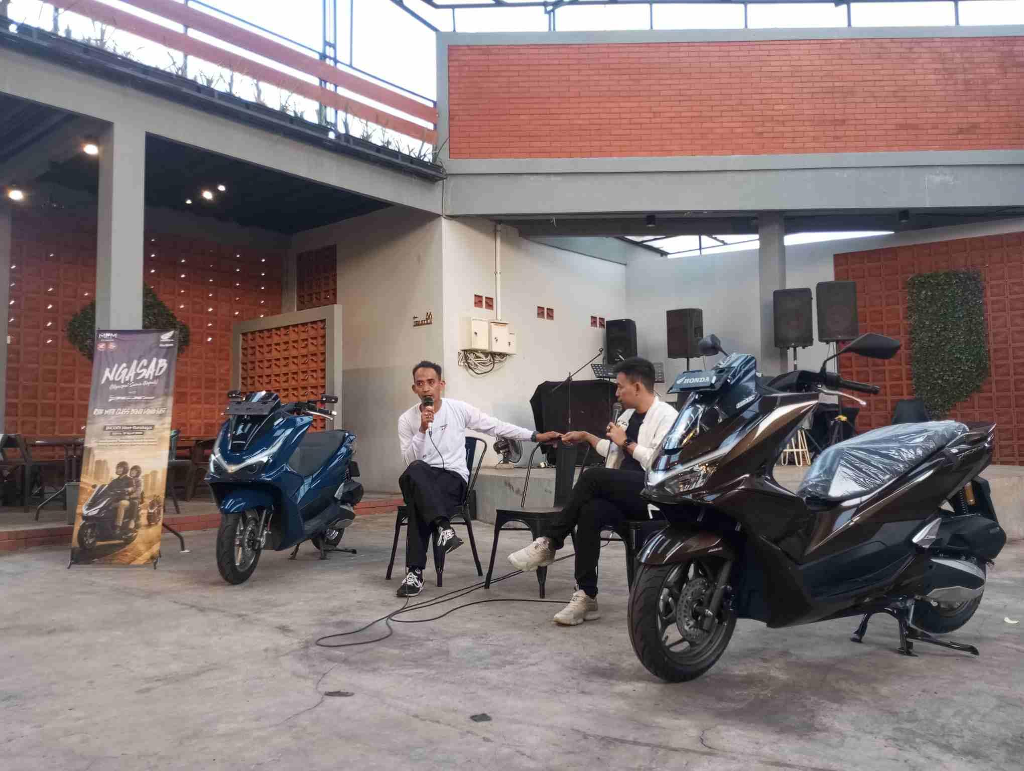 NGASAB (Ngaspal Sama Bapack)” di Surabaya Sabtu 18 April 2026 semakin seru dengan acara Sharing Session Community. Perwakilan Honda PCX Club Indonesia (HPCI) chapter Surabaya yang datang berbagi informasi tentang komunitas.