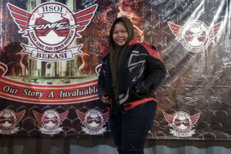 Seperti yang dilakukan Amroh, lady bikers yang tergabung di Honda Sonic Owner Indonesia (HSOI) Chapter Banten.