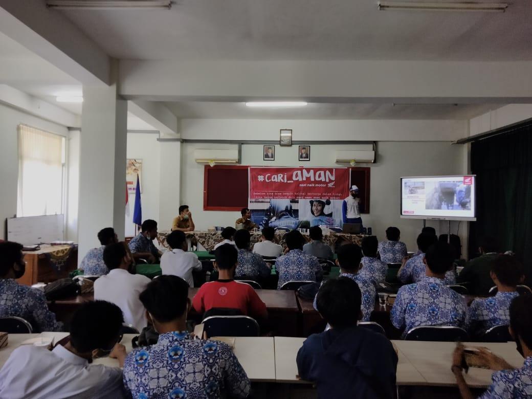 Sebanyak lebih kurang 70 orang siswa dengan tetap mengikuti standar protokol kesehatan antusias mengikuti pelatihan keselamatan berkendara yang disampaikan oleh Dio Suryanto selaku Safety Riding Instructor PT.Hayati Pratama Mandiri. Para siswa diberikan pengarahan mengenai hal-hal apa saja yang harus menjadi perhatian sebelum kita berkendara, baik dari kelengkapan maupun kondisi kendaraan.
