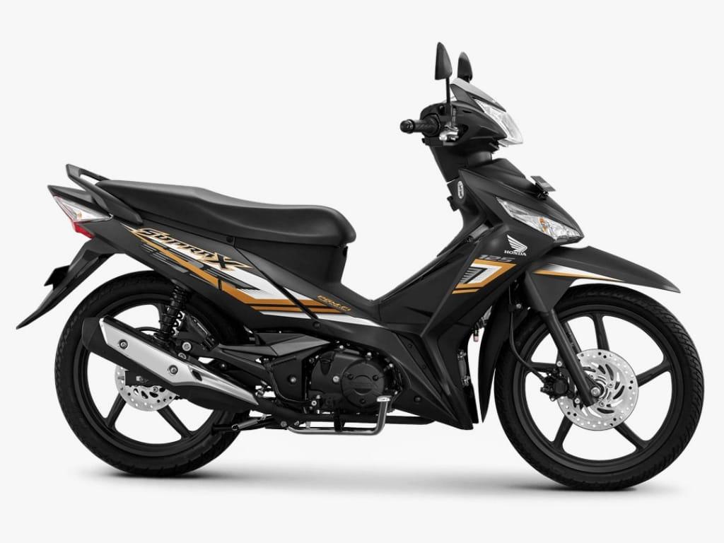 Menjadi salah satu model motor bebek terlaris di Indonesia, Honda Supra X 125 tipe Cast Wheel (CW) hadir dengan pilihan varian warna baru yakni Golden Matte Black. Varian warna baru ini memadukan warna hitam yang dibalut dengan stripe berwarna gold di atas desain bodi yang ramping dan sporti, sehingga memberikan kesan mewah bagi para penggunanya. Paduan warna tersebut kini semakin lengkap dengan hadirnya desain stripe bergaya sporti melalui penyematan grafis tajam dan minimalis yang dipadukan dengan warna bodi sepeda motor.