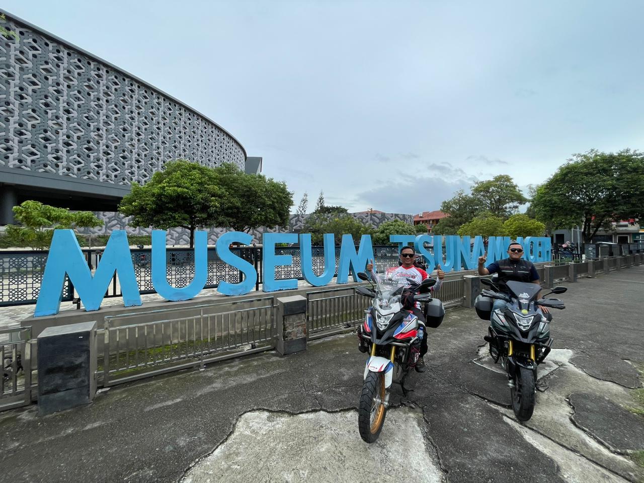 Beberapa tempat ikonik di Aceh dikunjungi Tim Andalas Journey CB150X Adventure Indonesia chapter Surabaya. Museum Tsunami, Situs Tsunami PLTD, Situs Tsunami Kapal di atas rumah Lampulo, dan Masjid Raya Baiturrahman.