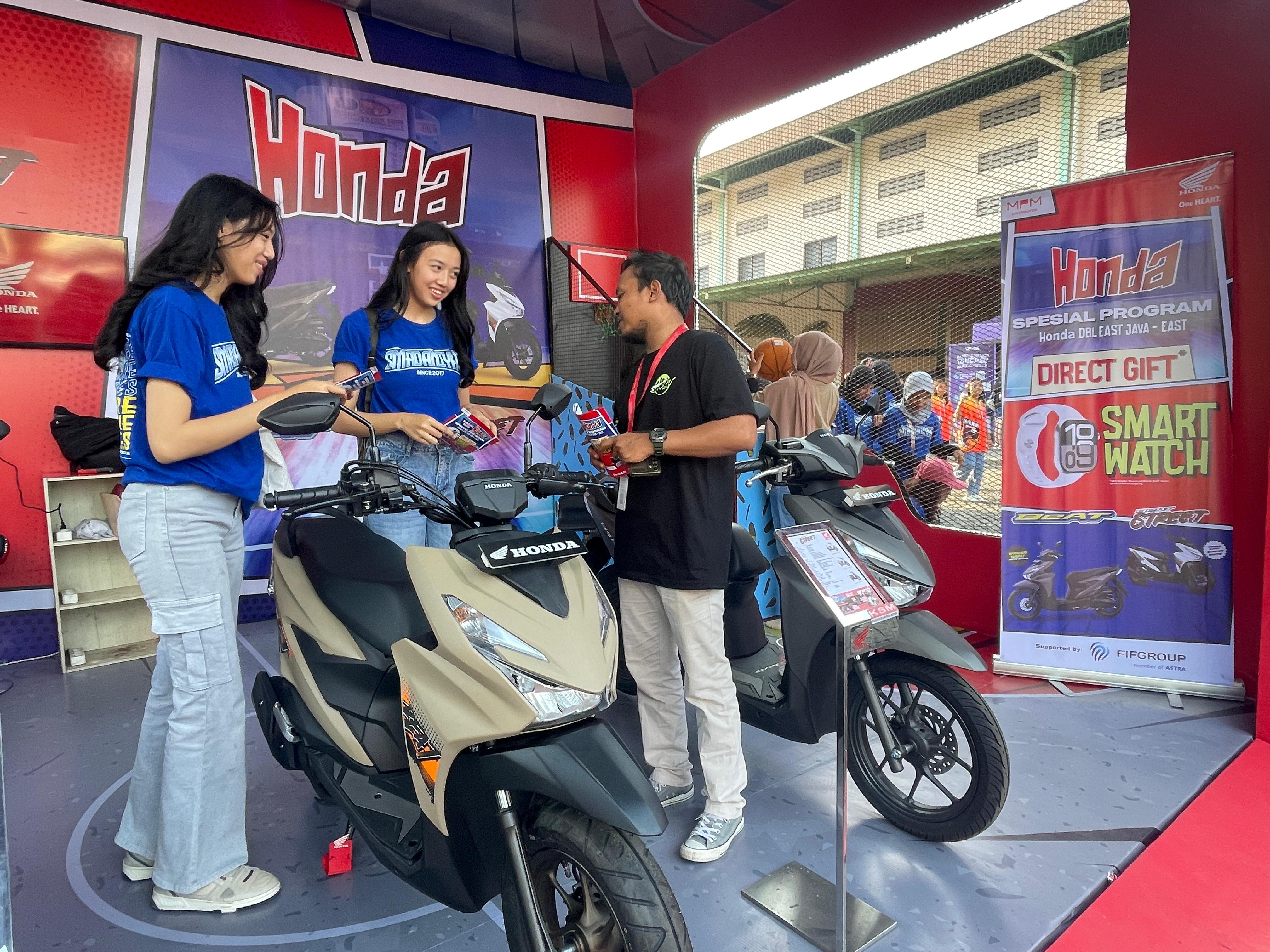 Pengunjung bisa langsung merasakan sensasi berkendara melalui test ride motor unggulan Honda BeAT dan BeAT Street. Tidak ketinggalan, MPM Honda Jatim juga menghadirkan program spesial selama event berlangsung. Khusus pembelian Honda BeAT Series, pengunjung berhak mendapatkan direct gift smart watch yang bisa langsung dibawa pulang.