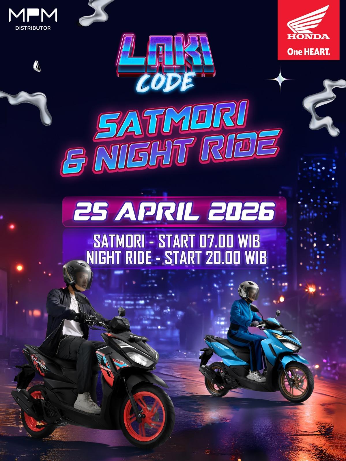Kemeriahan “Laki Code” juga akan diramaikan dengan kegiatan Satmori (Saturday Morning Ride) yang dimulai pukul 07.00 WIB serta Night Ride pada pukul 20.00 WIB. Kegiatan ini mengajak komunitas dan konsumen Honda untuk berkendara bersama secara aman dan menyenangkan.