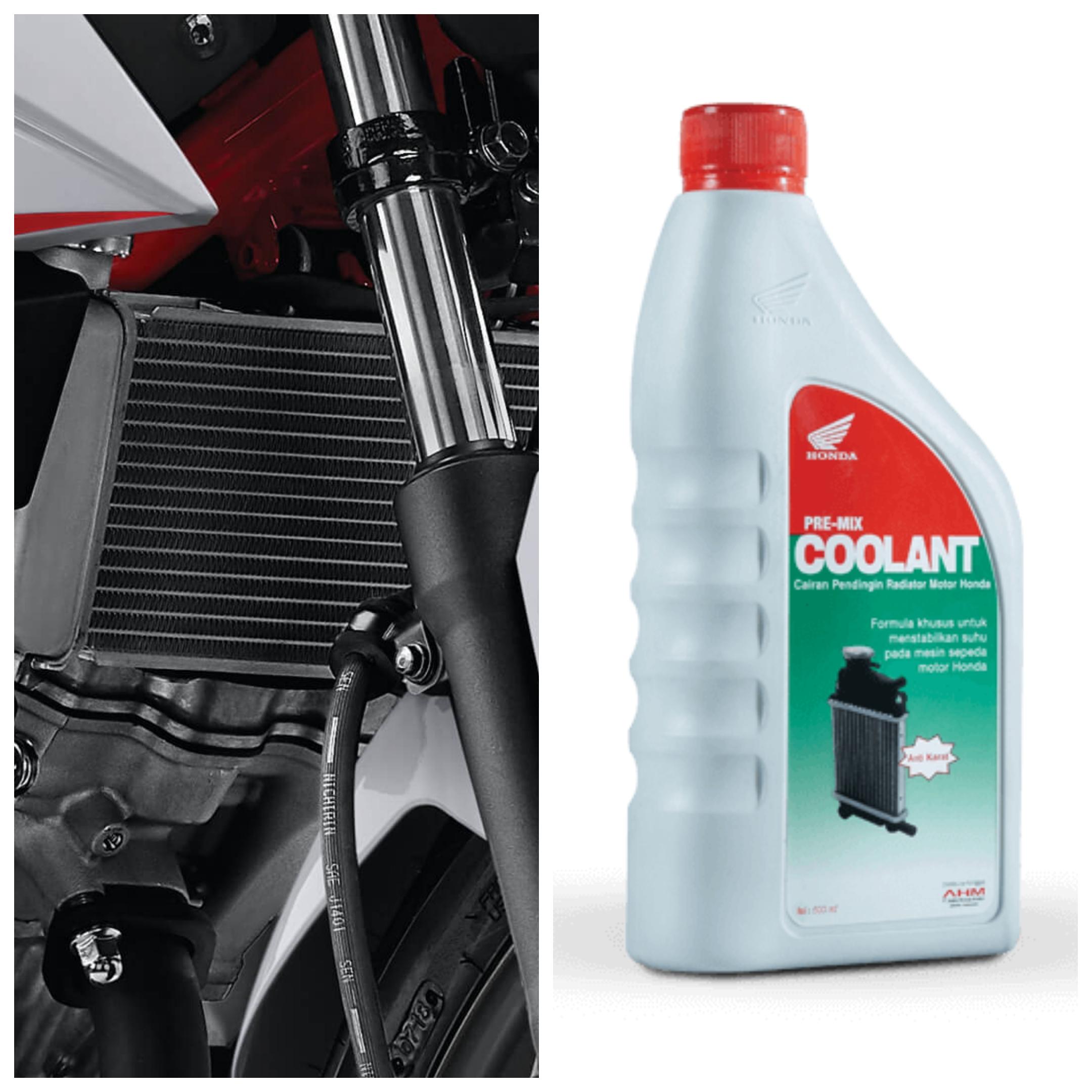 Cairan radiator yang diisikan ke radiator saat penggantian maupun penambahan untuk motor Honda sesuai rekomendasi pabrikan.